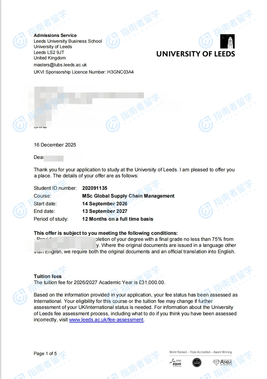 利茲大學(xué)全球供應(yīng)鏈管理理學(xué)碩士研究生offer一枚